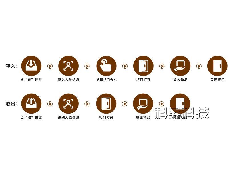 人臉識別智能行李自助寄存柜操作流程: