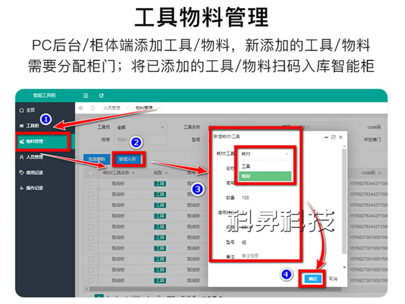 智能物料管理柜系統操作流程: